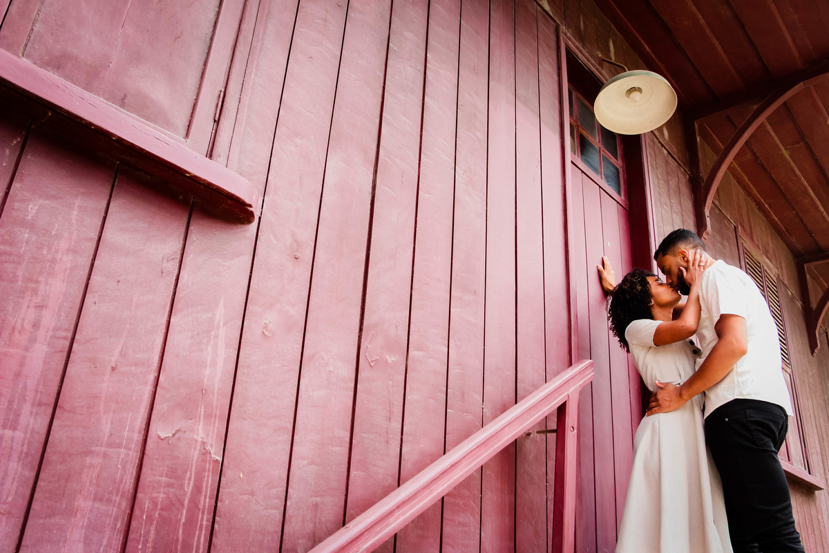 A locação escolhida foi Paranapiacaba, um local pra quem ama o estilo rústico, onde o clima nublado e a neblina baixa deixam as fotos ainda mais românticas. E o tempo só deixou a vila ainda mais charmosa, com suas construções rústicas e trens antigos . Quem diria que uma vila de trabalhadores se tornaria cenário de histórias lindas como essa.